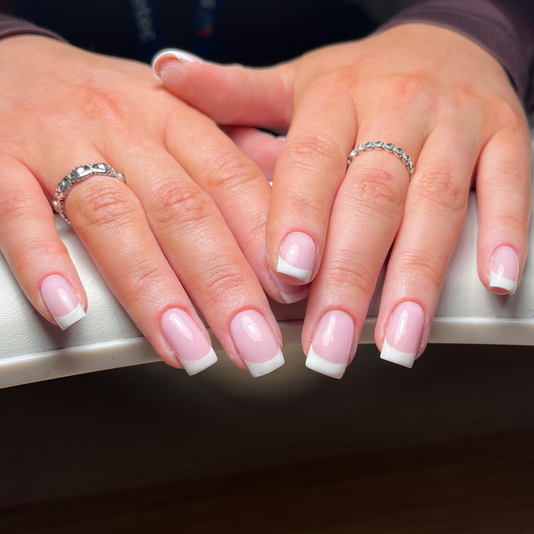 This includes nail shaping, cuticle work, builder gel base with french tips or one solid colour painted on top.