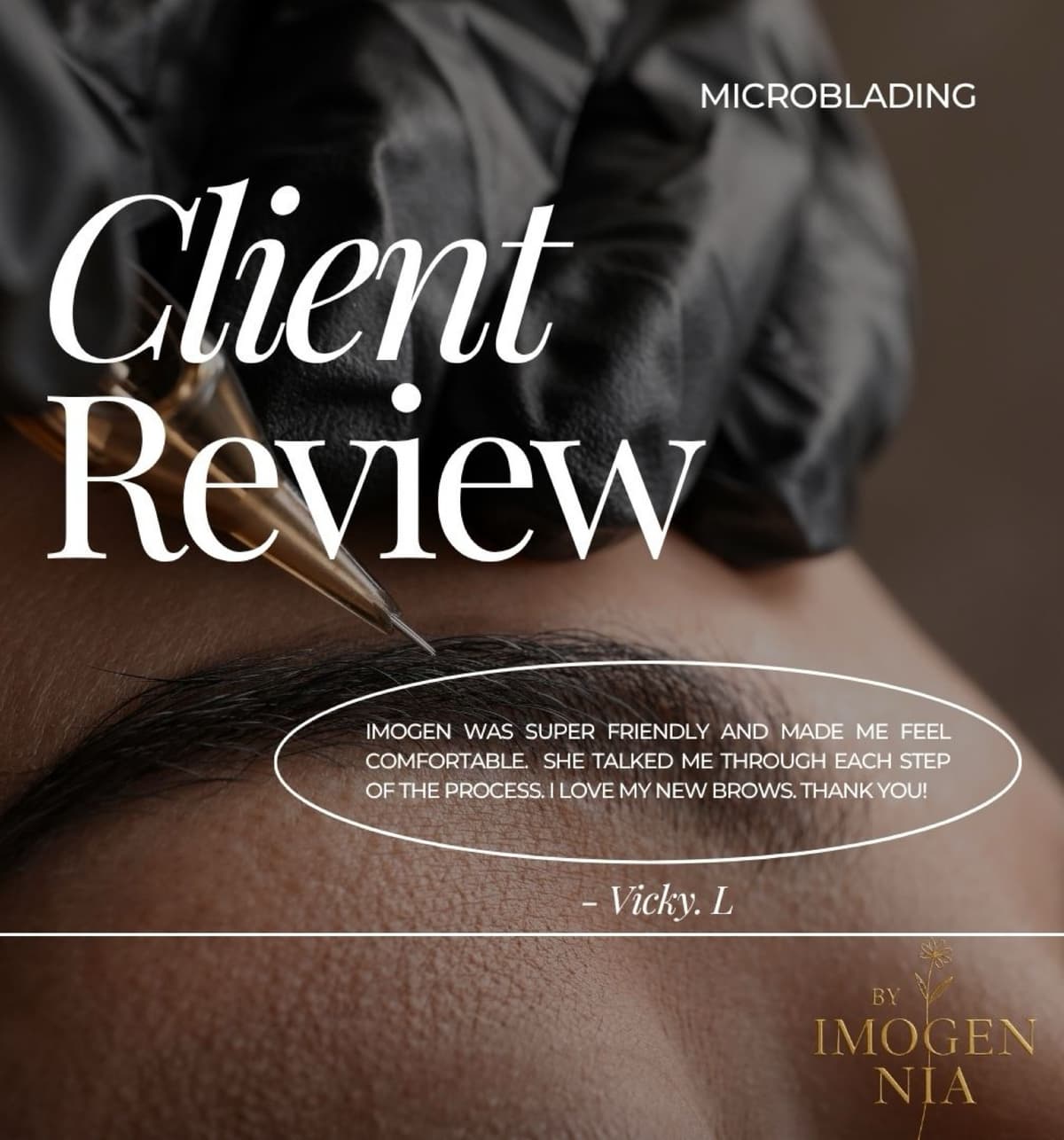 Imogen was super friendly and made me feel comfortable. She talked me through each step of the process. I love my new brows! Thank you!
