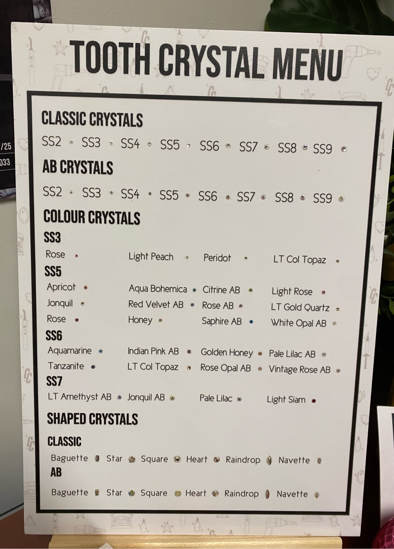 - Have a rough idea of the gems you’ll want and the placement. I’ll suggest an alternative if I’m unable to do it based on your bite type and anatomy.