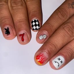 Tier 2 nail art with Apres Gel-x extensions include medium level nail art: flames, varied charms, snakeskin, tortoise shell, simple flowers, stripes, chrome French manicure etc. If you are unsure which tier your design falls under please message a reference photo to @fuegonailsldn