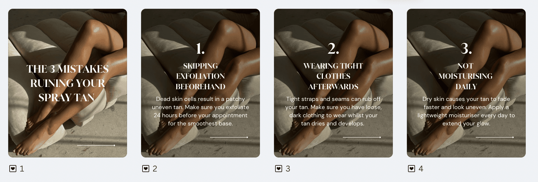 As an example, you could focus on educating clients on prep or aftercare for their treatment. This shows you're an expert in your field, but also helps ensure your clients are well prepared for their appointment.