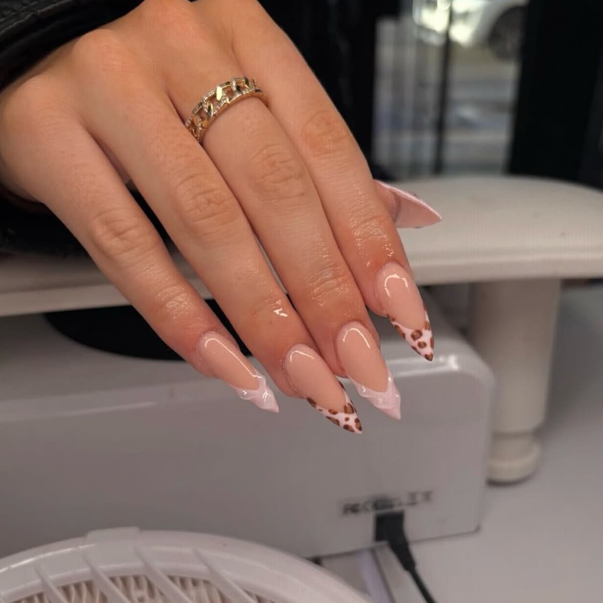 A hard gel extension is a sculpted layer of hard builder gel used to add length and shape to the natural nail. This creates a strong, durable enhancement with a smooth, glossy finish that looks natural and long-lasting.
