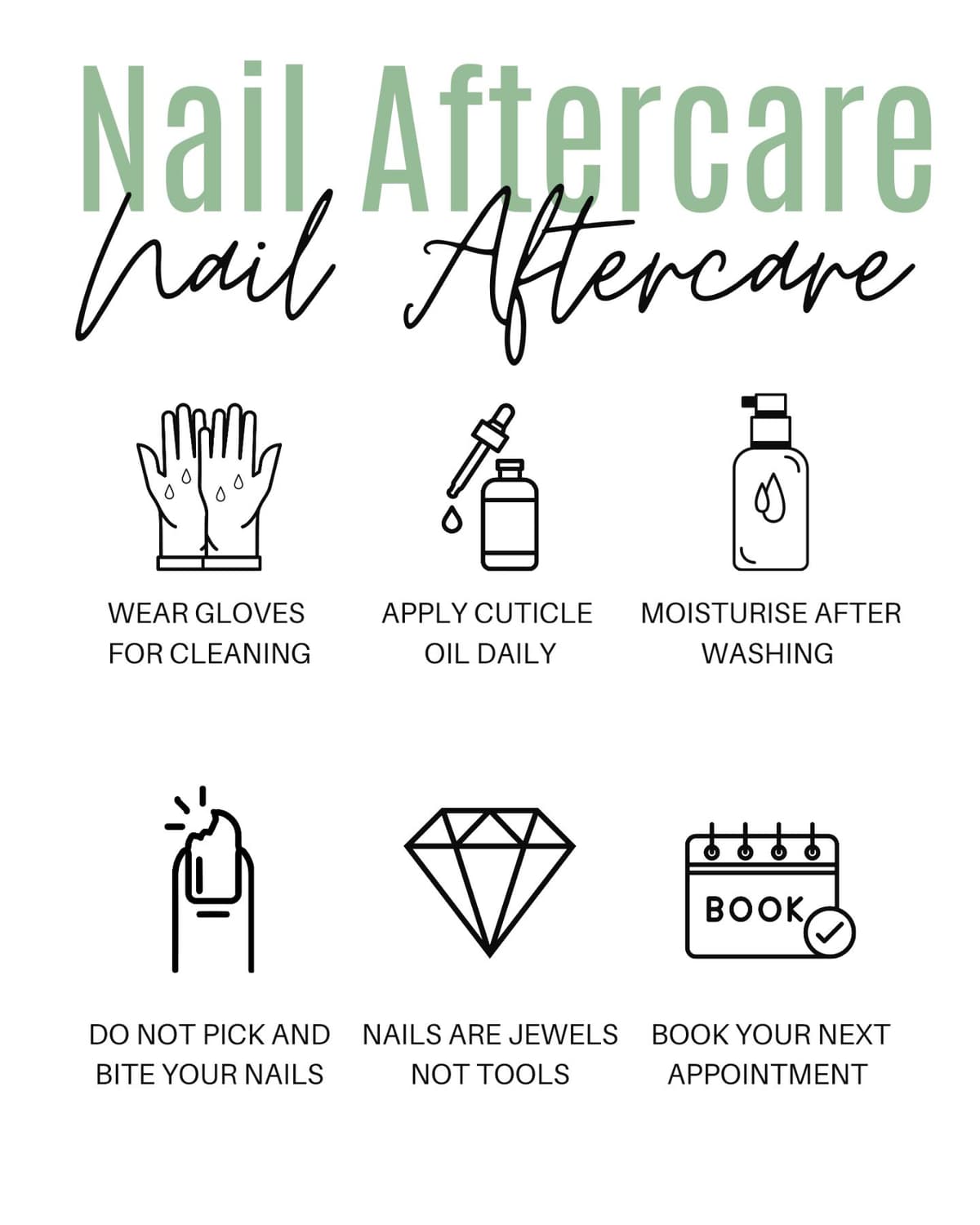 To keep your nails looking fresh and lasting longer, please follow these tips:
