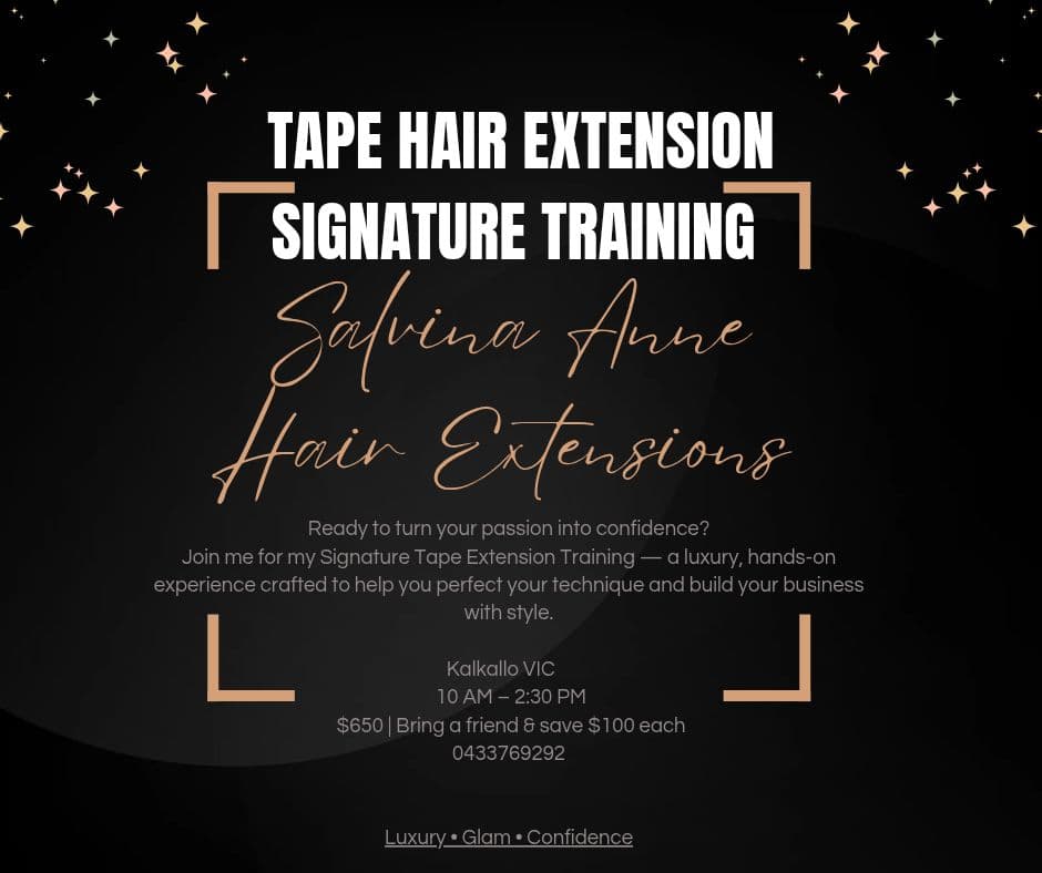 Thinking about starting your journey with extensions? This Signature Tape Extension Training is designed just for beginners. Learn directly from the Founder & Educator at Salvina Anne Hair Extensions, and discover the techniques, tools, and confidence to start offering premium tape installs to your own clients.