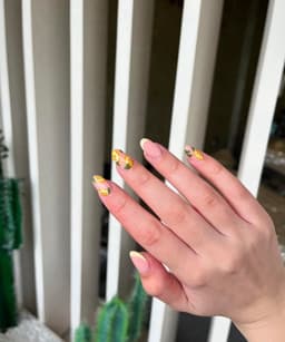 Eg. Nail art on 2-3 nails, simple designs, chrome overlay over block colour