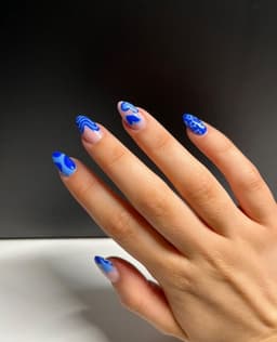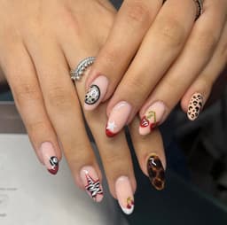 Eg. Complex design, different design on each nail. French tip with added nail art. Isolated chrome designs