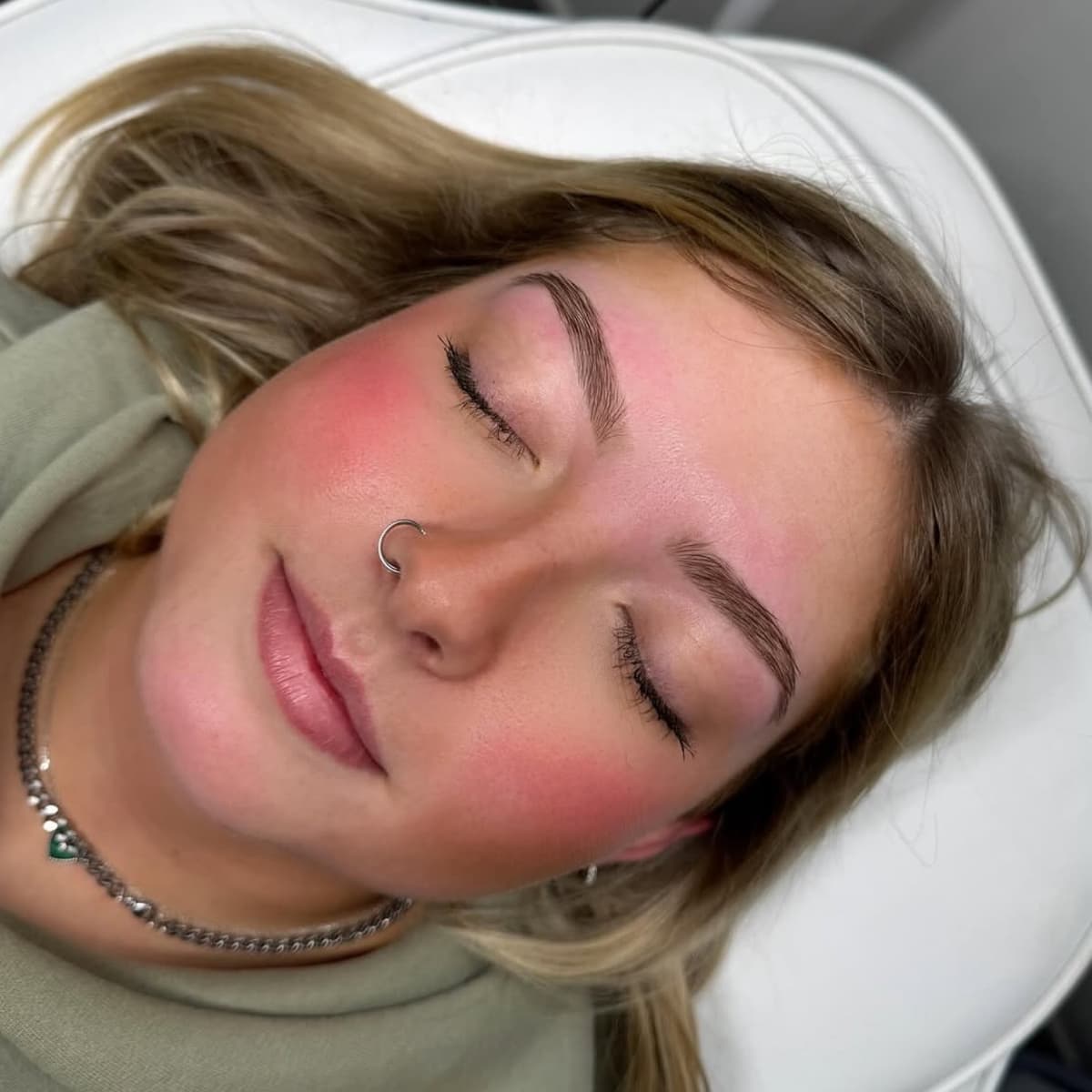 We start by cleansing the brow area and mapping your desired shape. The hybrid stain is applied carefully to enhance your natural brow shape. After the development time, it’s removed to reveal beautifully tinted brows that can last up to 7–10 days on the skin and 4–6 weeks on the hair